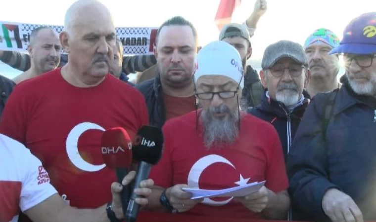 Grup adına konuşan Yıldız Teknik Üniversitesi Dr. Mustafa Sinan Yardım "Bugün burada Sarayburnu Fatihleri açık su yüzücüleri olarak, Gazze'deki zulme karşı tepkimizi ve duruşumuzu göstermek için toplanmış bulunuyoruz. 7 Ekim'den bugüne dünya eski dünya değil. 7 Ekim'de adeta dünya ile hayati bağları kesilmiş, 45 kilometre karelik daracık bir alana, bir toplama kampı hayatına mahkum edilmiş ve köseye sıkıştırılmış, kendi öz toprakları tüm uluslararası kararlara rağmen kanun tanımaz İsrail'in yeni yerleşimcileriyle işgaline maruz kalmış, nefes alamaz hale getirilmiş. Gazze'deki bugünkü durum başka bir hale evirilmiştir. Konu artık Gazze'deki insanlık dramıdır. Emsali bulunmayan bir çocuk katliamıdır" dedi.