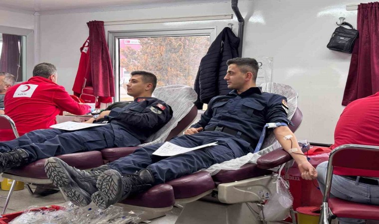 Saraykent Jandarma personeli kan bağışının önemine dikkat çekmek için kan verdi.