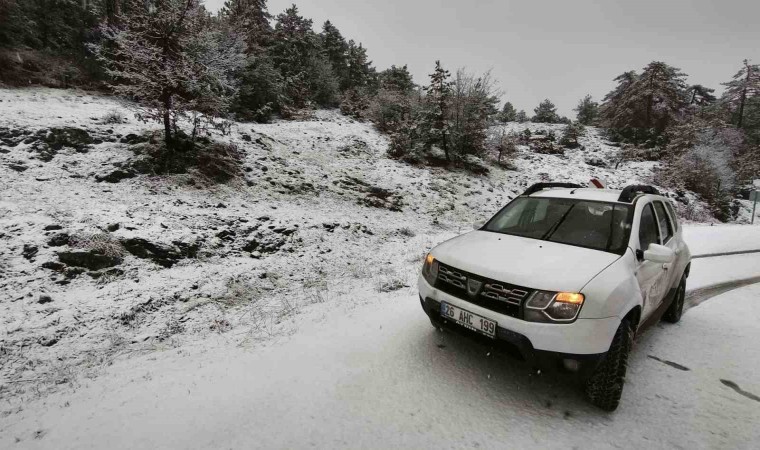 Eskişehir’in Sarıcakaya ilçesine ormanlık alanda sabah saatlerinden itibaren yoğun kar yağışı etkisini gösterdi.