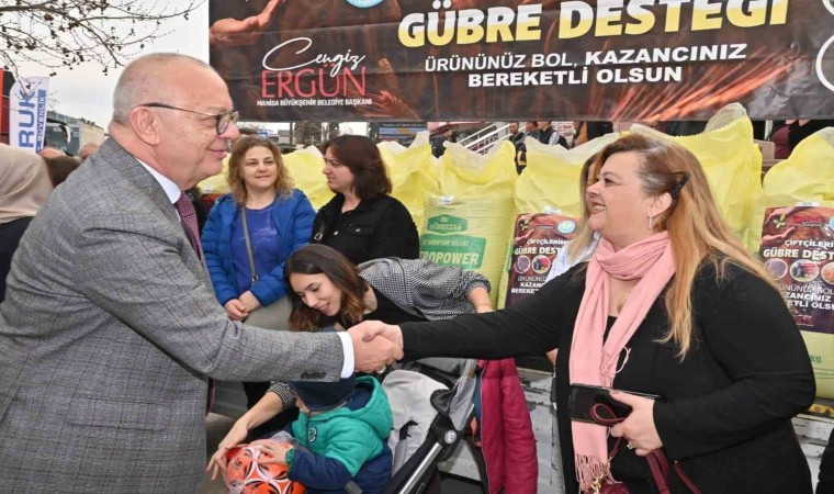 Sarıgöl’e yaptıkları desteklerden de bahseden Başkan Ergün, “Gübre desteğimizin yanı sıra Sarıgöl’ümüze; Bağ alanlarının dolu zararından korunması için 10 adet dolusavar, 22 adet sera, 4 adet tarımsal tahmin ve erken uyarı sistemleri, 20 ton hububat ve yem bitkisi tohumu, 15 bin adet meyve fidanı, 37 bin adet plastik sepet, 7 bin adet plastik kasa, 2 bin 500 adet üzüm sergi bezi ve zeytin toplama örtüsü, 29 adet damızlık koç ve teke, 5 adet tarım makinesi, 2 adet taral doldurma tesisi, 4 adet tarımsal sulama amaçlı sondaj kuyusu gibi çok sayıda hizmeti çiftçimize sunduk. Tüm bu saydıklarımla birlikte Sarıgöl’deki siz değerli çiftçilerimize bugüne kadar Manisa Büyükşehir Belediyesi olarak 8 milyon 950 bin lirayı bulan desteğimiz oldu” diye konuştu.