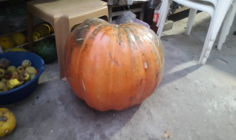 Manisa’nın Sarıgöl ilçesine bağlı Alemşahlı Mahallesinde oturan Mehmet Kahveci isimli üretici yaz arkadaşından aldığı tohumları yaz aylarının başında üzüm bağının kenarına dikti. Bol sulama yapılan bağda tanesi 80 kilogram gelen 8 adet devasa kabak yetişti. Kabakları toplayıp traktör sepetine iki kişinin yardımıyla anca taşındıklarını kaydeden Kahveci, kendine yetecek tohum aldıktan sonra kabakları komşu ve akrabalarına dağıttı.