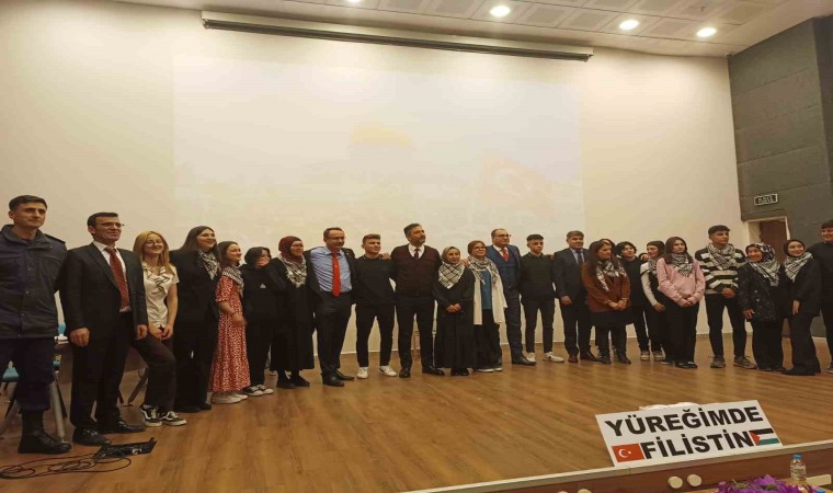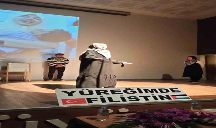 Atatürk Kültür Merkezi Konferans Salonunda yapılan programda Filistin’de yaşanan zulmü etkili bir şekilde sahneleyen öğrencilerin performanslarını davetliler gözyaşları içinde izledi.