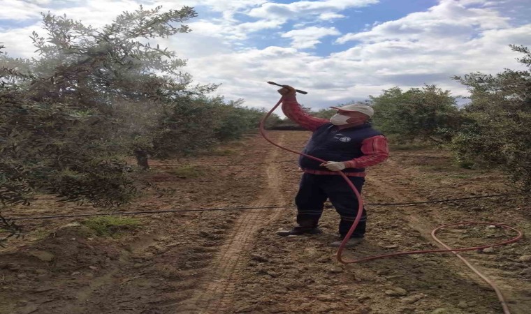 Manisa’nın Sarıgöl ilçesinde çiftçiler zeytinde pamuklu bit ile mücadeleye ilaçlama yöntemiyle başladı.