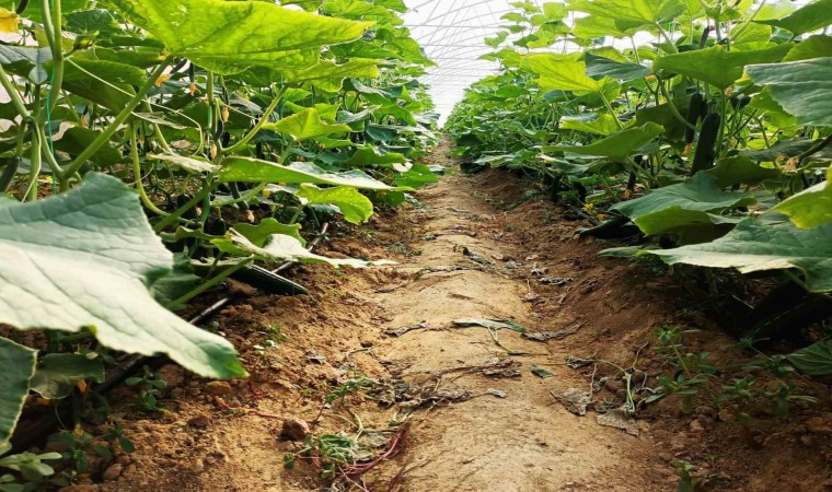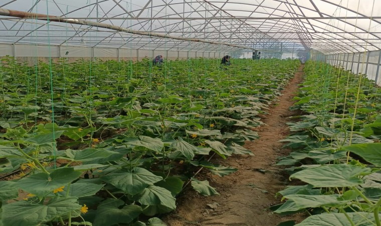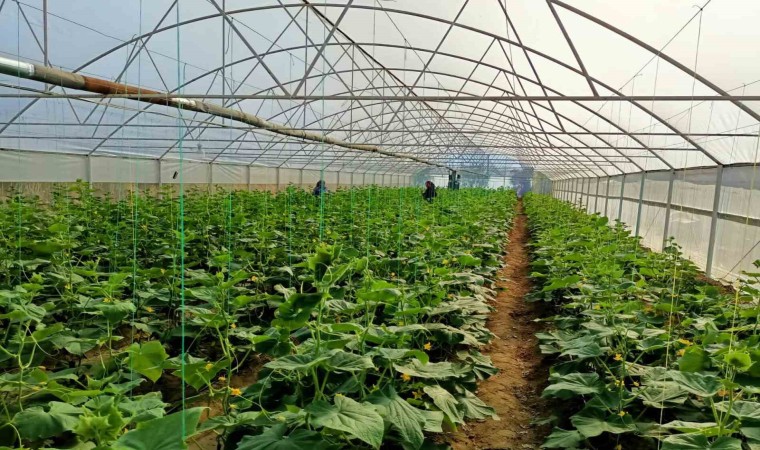 Bu yıl serasında ilk kez Emcelli Biberi yetiştiren ve olumlu sonuç alan çiftçi Nurullah Akbay (41) serasında bu kez de salatalık yetiştirerek ikinci ürünü almaya başladı.