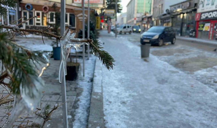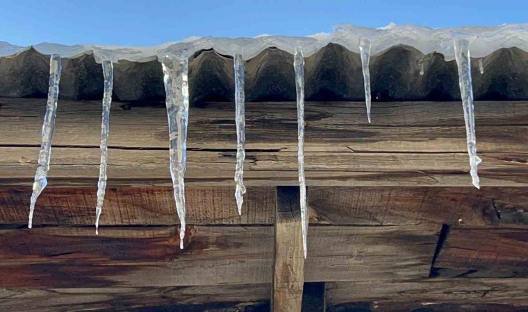 Hava sıcaklığının eksi 10 dereceye düştüğü Sarıkamış, buz kesti. Soğuktan araçların camları donarken, çatılarda buz sarkıtları oluştu.