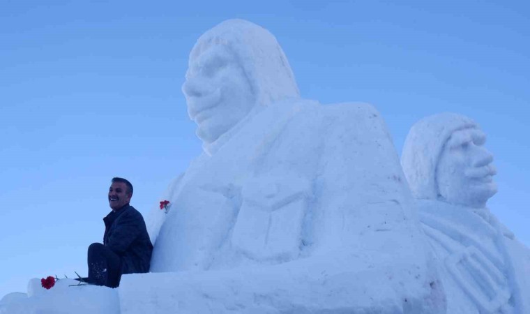 Kars’ın Sarıkamış ilçesinde, 110 yıl önce Sarıkamış Harekatı’nda şehit düşen askerler anısına temsili yapılan kardan heykeller tamamlandı.