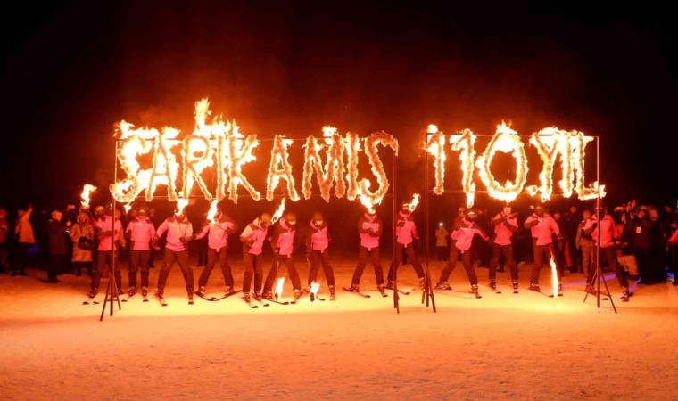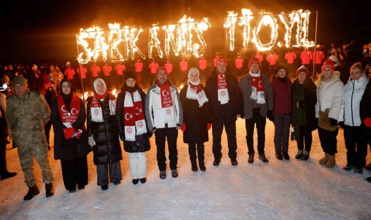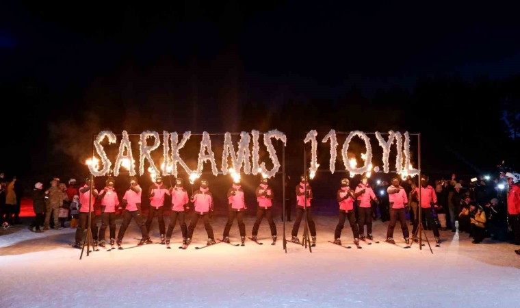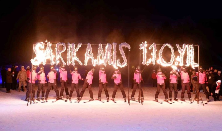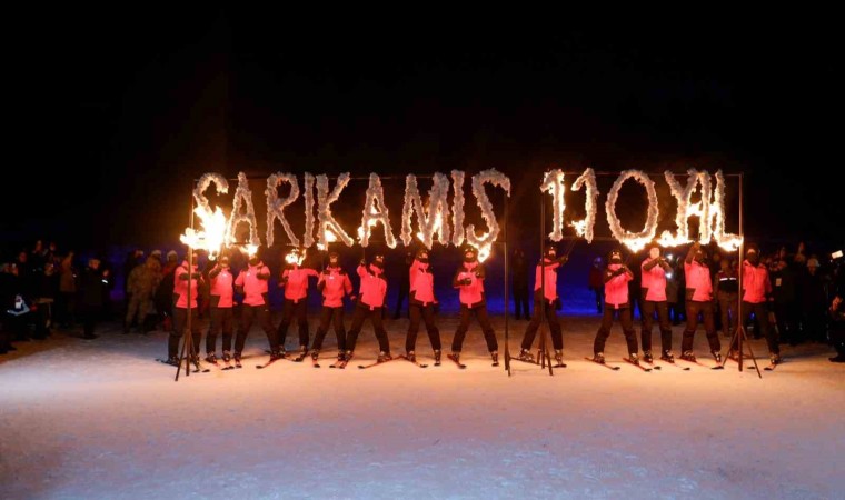 Kars Sarıkamış’ta şehit olan askerlerin anısına kayak merkezinde meşaleli kayak gösterisi yapıldı.