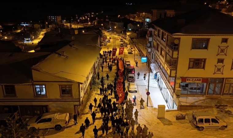 Erzurum’un Şenkaya ilçesinde Sarıkamış Şehitleri anısına fener alayı düzenlendi.