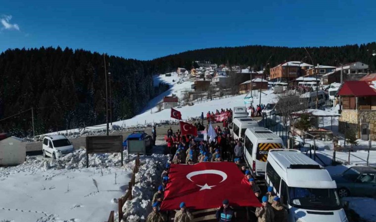 Giresun Valiliği Gençlik ve Spor İl Müdürlüğü koordinasyonunda Yavuz Kemal Belde Belediyesi’nin sahipliği yaptığı yürüyüşe Sivil Toplum Kuruluşları, öğrenciler ve vatandaşlar katıldı. Kulakkaya Yaylası’nın merkezinde başlayan yürüyüş yaklaşık 3 kilometrelik yürüyüşün ardından Alçakbel zirvesinde sona erdi. Karlı arazide, çam ağaçları arasında eller üzerinde taşınan Türk bayrağı renkli görüntüler oluşturdu.