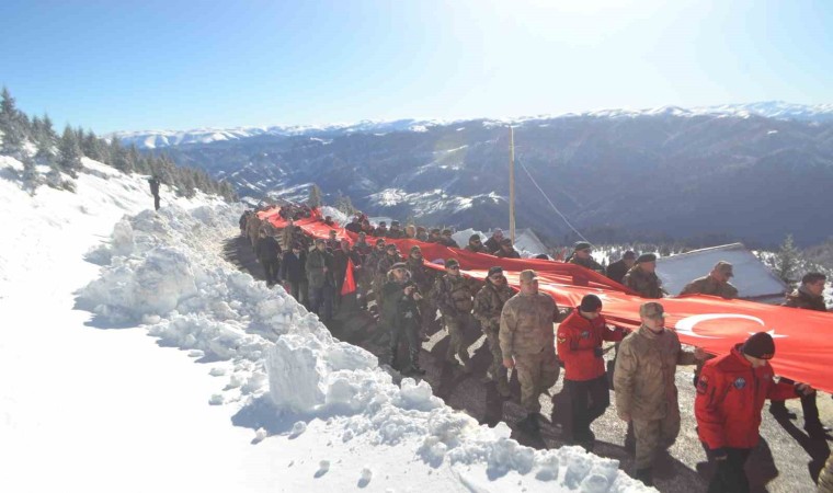 Sarıkamış Harekatı’nın 109. yılı anma etkinlikleri kapsamında Trabzon’un Şalpazarı ilçesinde bulunan 2 bin 187 rakımlı Sis Dağı’nda yürüyüş düzenlendi. 175 metre uzunluğundaki Türk bayrağının taşınması renkli görüntüler oluşturdu.