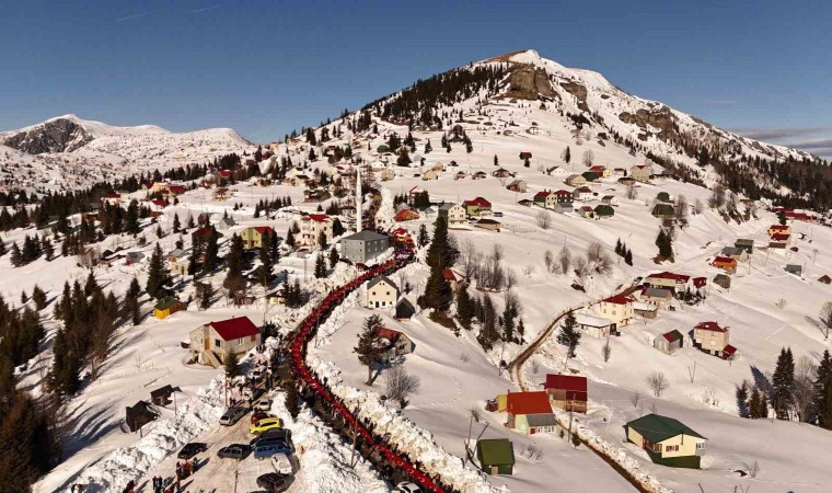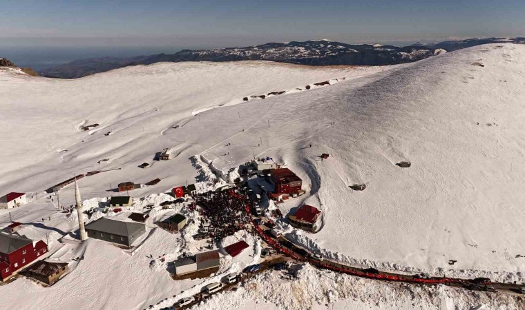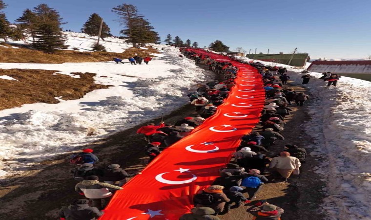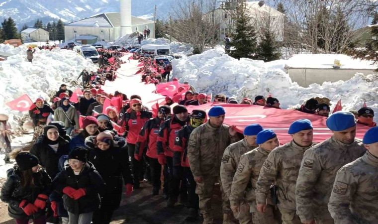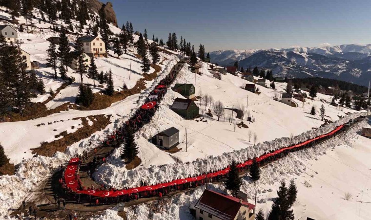 Sarıkamış Harekatı’nın 110. yılı anma etkinlikleri kapsamında Trabzon’un Şalpazarı ilçesinde bulunan 2 bin 187 rakımlı Sis Dağı’nda yürüyüş düzenlendi. Karların arasında 250 metre uzunluğundaki Türk bayrağının taşınması renkli görüntüler oluşturdu.
