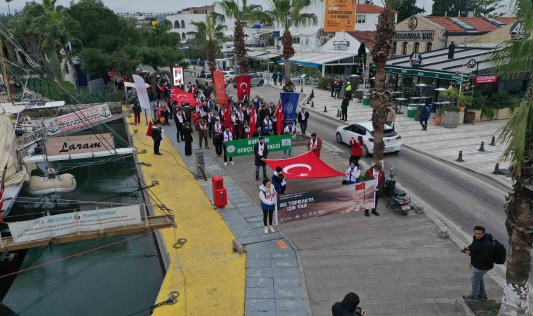 Bodrum Kaymakamlığı, Gençlik ve Spor İlçe Müdürlüğü ve Bodrum Gençlik Merkezi tarafından düzenlenen yürüyüş, Milta Marina’dan başladı. Bodrum Kaymakamı Mustafa Çit, ilçe protokolü, gaziler, öğrenciler ve vatandaşların katıldığı yürüyüşte 120 metre uzunluğunda Türk Bayrağı açıldı.