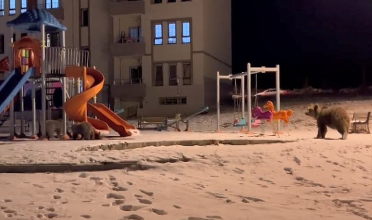 Lojmanların arasında çöp konteynerlerinde yiyecek arayan bozayılar, parka uğramadan bölgeden ayrılmak istemedi. Yavrularıyla birlikte oyun parkına gelen ayılar, vatandaşlar tarafından cep telefonuyla kaydedildi.