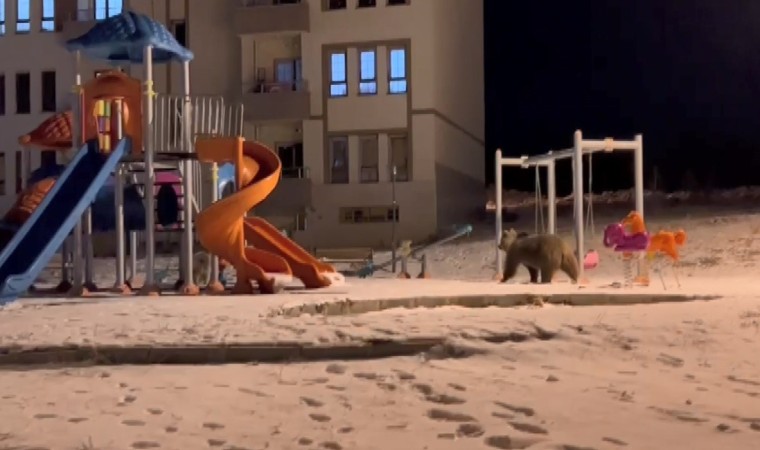 Sarıkamış’ta ayılar bu kez site arasındaki parkta görüntülendi.