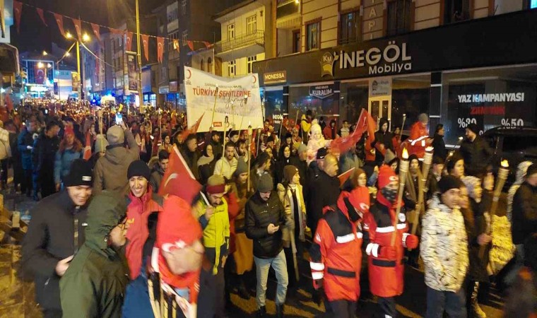 Sarıkamış şehitleri için binlerce kişi meşalelerle yürüdü.