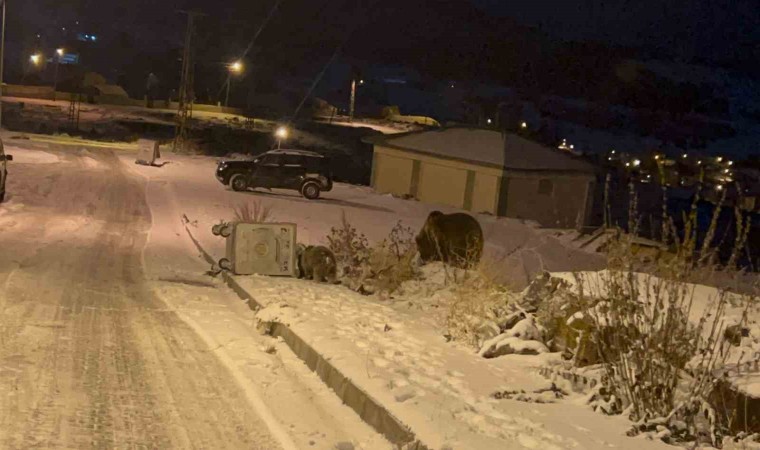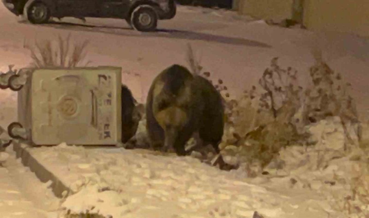 Her yıl Kasım ve Aralık aylarında kış uykusuna yatan boz ayılar, bu yıl kış uykusuna yatmadı. Boz ayılar, yavrularıyla birlikte caddede salına salına yürüyerek yiyecek arıyor. Çöp konteynırlarına devirerek yiyecek arayan boz ayı ve yavruları kameralara yansıdı.