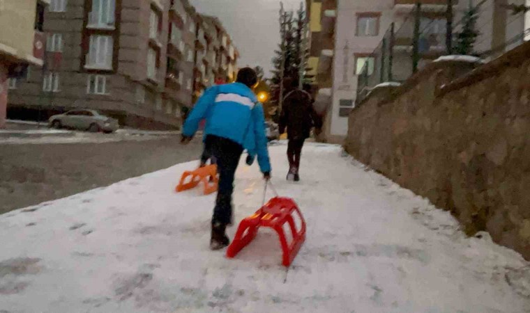 Bir süre kaydıktan sonra yorgun düşen çocuklar, kızaklarını kucaklayarak evlerinin yolunu tuttu. Çocukların mutlulukları ise yüzlerine yansıdı.