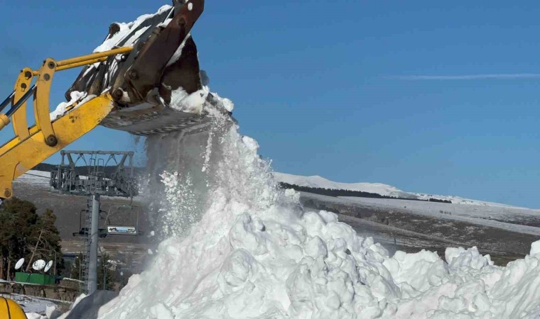 Kars’ın Sarıkamış ilçesinde Sarıkamış Harekatı’nın 109’uncu yılı anma etkinlikleri yer alan şehit asker figürlerinin yansıtılacağı kardan heykellerin yapımı için ilçeye 20 kilometre uzaklıktaki Handere Bölgesi’nden İl Özel İdaresine ait kamyonlarla taşınırken, taşınan kar, şehit heykellerinin yapılacağı Sarıkamış Kayak Merkezi’nin 1. Etap Oteller Bölgesi’ndeki alana yığılıyor.