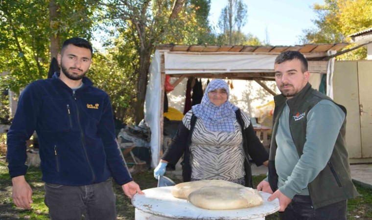 Peynirin her aşamasında emek olduğunu ifade eden Cevriye Sağlam, “Sabah 05.00’te kalkıyoruz, inekleri sağıyoruz. Sıcak süt olması önemli, hemen süzüyoruz süzgeçlerle, maya atıyorum. 1 saat duruyor. Daha sonra torbalıyorum temiz torbalara, sonra onu baskıya koyuyorum süzülüyor. Sonra tereyağını eritiyor döküyorum, tuzunu veriyorum. Bu hale geliyor, tekrar baskıya koyuyorum. Tahta koyuyorum, üzerine taş, sonra yüksekte kurutuyoruz. İşkembenin içerisinde 2-3 ay kalarak kuruyor, zararı yok, kuruduğu zaman daha lezzetli oluyor” dedi.