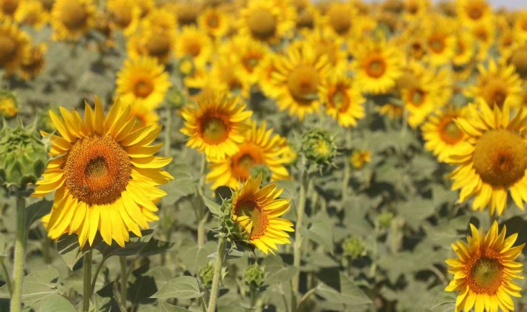 Türkiye’nin sıvı yağ ve kuruyemiş üretiminde önemli bir yere sahip olan ayçiçeği çiçek açmasıyla tarlalar sarıya boyandı.