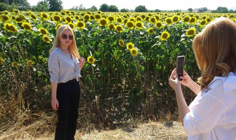 Fotoğraf tutkunlarının vazgeçilmezi haline geldiğini söyleyen Esra Aydemir, “Birkaç gün önce bu güzergâhı kullanan arkadaşlar görsel şölen sunan bu tarlaları görünce durup cep telefonuyla fotoğraf çekilmişler, sosyal medya hesaplarında paylaşmışlardı. Bizde gördük, geldik burada bolca fotoğraf çekiyoruz” dedi.