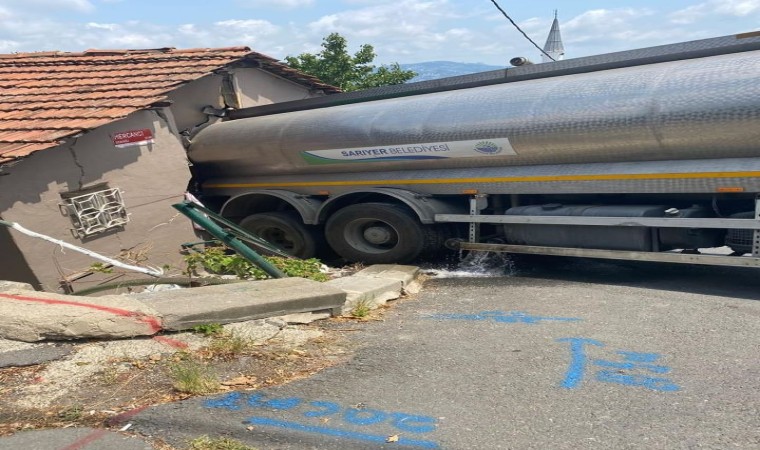 Sarıyer Belediyesi’ne ait su tankeri, Yeniköy’de manevra yaparken bir gecekonduya girdi. Tankerin su dolu olması nedeniyle şoför direksiyon hakimiyetini kaybederek eve çarparken, ev sakinlerinin sıcak havadan dolayı bahçede oturmaları olası bir facianın önüne geçti.