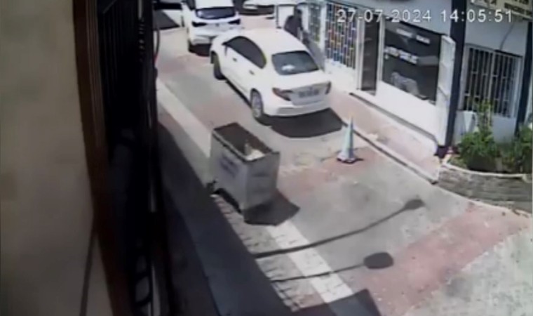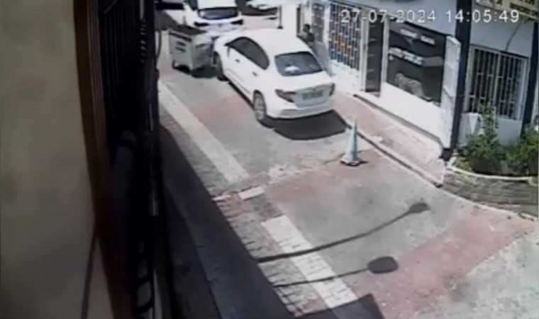 Konteynerin yokuş aşağı kayarken araçlara çarptığı anlar bir dükkanın güvenlik kamerasına yansıdı. Görüntülerde, konteynerin araçlara çarparak yokuştan kaydığı, bir kişinin de yakalamaya çalıştığı görülüyor.