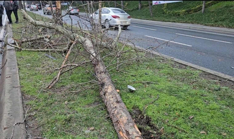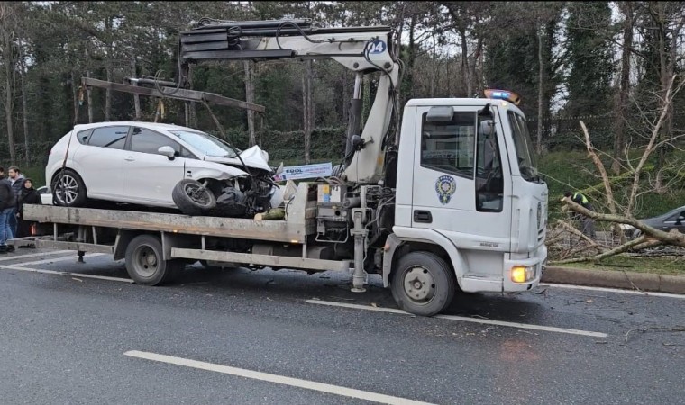Sarıyer’de sürücünün direksiyon hakimiyetini kaybettiği otomobilin çarptığı ağaç yerinden söküldü.