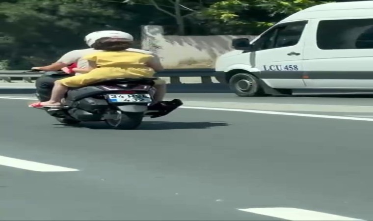 Edinilen bilgiye göre olay, önceki gün Sarıyer Ayazağa’da saat 15.00 sıralarında meydana geldi. Bir motosikletli, önüne ve arkasına oturttuğu iki çocukla yolculuk yaptı. Motosikletlinin çocuklarla yaptığı tehlikeli yolculuk diğer sürücüler tarafından görüntülendi. Sürücünün kask taktığı motosiklette seyahat eden çocukların ise kaskının olmadığı görüldü. Sürücünün çocuklarla yaptığı tehlikeli yolculuk tepki çekti.