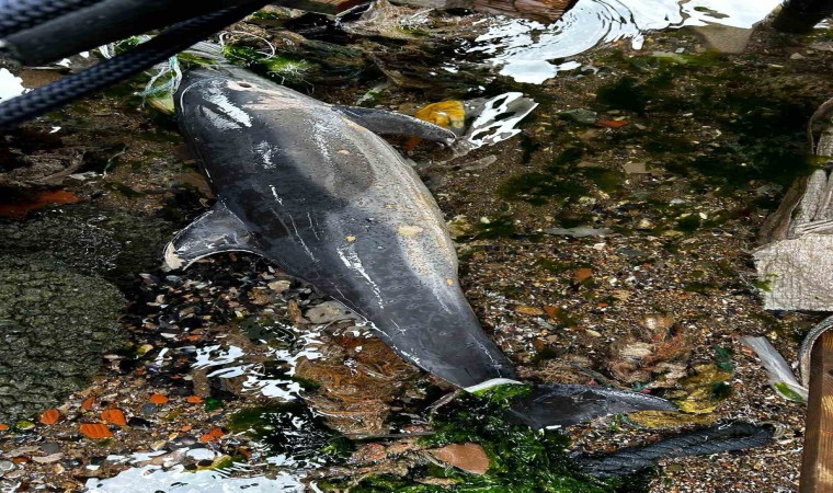 Sarıyer’de ölü yunus balığı sahile vurdu.