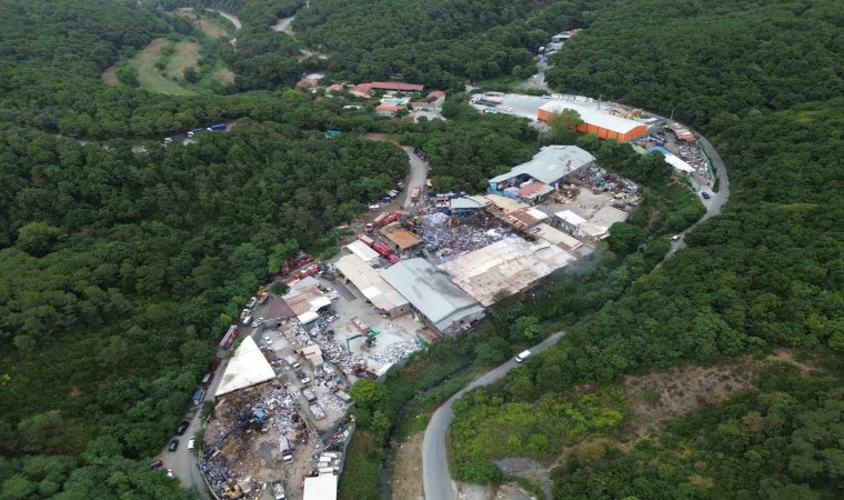 Sarıyer’de dün gece kağıt depolama ve geri dönüşüm tesisinde çıkan yangın sonrası oluşan tahribat havadan görüntülendi. Geri dönüşüm atıklarının birçoğunun yandığı, çekilen görüntülere yansıdı.