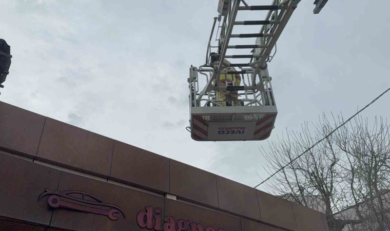Düzce’de şarjda bırakılan matkap bomba gibi patladı. Dumanların yükseldiği yangında işletmede maddi hasar oluştu.
