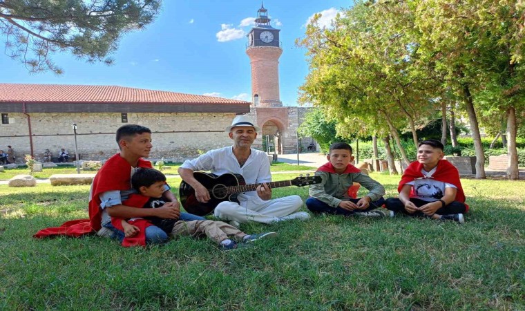 Tokat’ın Zile ilçesinde 4 çocuk 30 Ağustos Zafer Bayramı nedeniyle ellerine aldıkları Türk bayrağı ile Murat Evgin’in bestelediği ’Şehit’ türküsünü söyleyerek sokakları gezmişti. Görüntüleri izleyen şarkıcı Murat Evgin, sosyal medya hesabından çocukların yanına geleceğini söylemişti. Tokat’ın Zile ilçesine gelen Evgin, Ali Haydar Kütük (14), Mert Kütük (12), Poyraz Akay (5) ve Arda Akay’la (12) ile Zile Kalesinde bir araya gelerek ‘Şehit’ türküsünü yeniden söyledi.