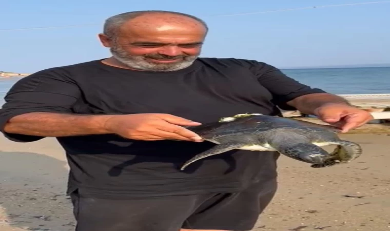 Saros’ta sahile vuran caretta caretta denize bırakıldı