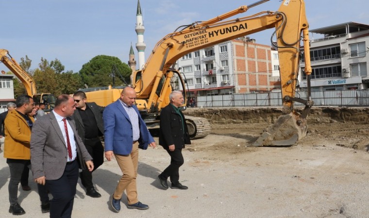 Manisa Büyükşehir Belediyesi ve Saruhanlı Belediyesi işbirliği ile ilçeye kazandırılacak olan ‘Saruhanlı Yeraltı Otoparkı, Gençlik Merkezi ve Kent Meydanı Projesi’nde çalışmalar devam ediyor. Manisa Büyükşehir Belediyesi Genel Sekreter Yardımcısı Ali Öztozlu ve Saruhanlı Belediye Başkanı Zeki Bilgin, projeyi yerinde inceledi. İnceleme sırasında Manisa Büyükşehir Belediyesi Fen İşleri Dairesi Başkanı Uğur Topkaya ve yüklenici firma yetkilisi tarafından proje çalışmaları hakkında bilgiler verildi. Topkaya, “Saruhanlı Belediyesi ile protokol yapmıştık. Otopark kısmının maliyeti Saruhanlı Belediyesi tarafından karşılanacak. Kalan kısmı da Manisa Büyükşehir Belediyesi karşılayacak. Bugün itibari ile çalışmalarımıza başladık. Öncelik olarak zemin iyileştirme çalışmalarıyla başlayacağız. Ardından temelimizi açarak, çalışmalarımız devam edecek. Saruhanlı ilçemize hayırlı olsun” dedi.