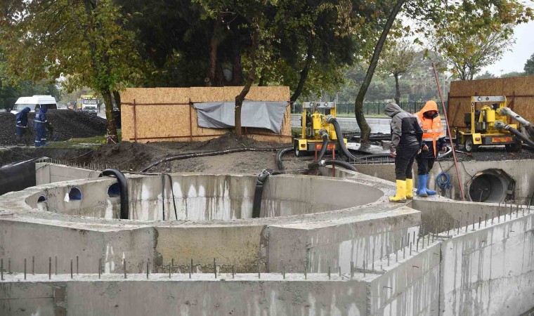 İnşaatı devam eden ve şuan betonarme imalatı tamamlanan 6 metre çapında ve 8 metre derinlikteki Canik Yağmur Suyu Keson Terfi Merkezi ve önemini anlatan SASKİ Makine İkmal ve Tesisler Daire Başkanı Yusuf Mutlu, “Gülsan Sanayi Sitesi yanında inşaat çalışmalarına devam ettiğimiz Yağmur Suyu Keson Terfi Merkezi sanayi sitesinden gelen hatlar kesona bağlandı. Şu anki haliyle bile hem motopomplarımızla hem de içerisine koyduğumuz dalgıç pompalarımızla kesona toplanan suları tahliye ettik. Çevre sular tamamen bu kuyuya toplandı. Tamamen inşaatının bitmemesine rağmen şu haliyle bile keson çalışır durumda. Ekiplerimiz de bölgede 7/24 aktif çalıştı. Çok şükür burada bir aksilik yaşamadık” dedi.