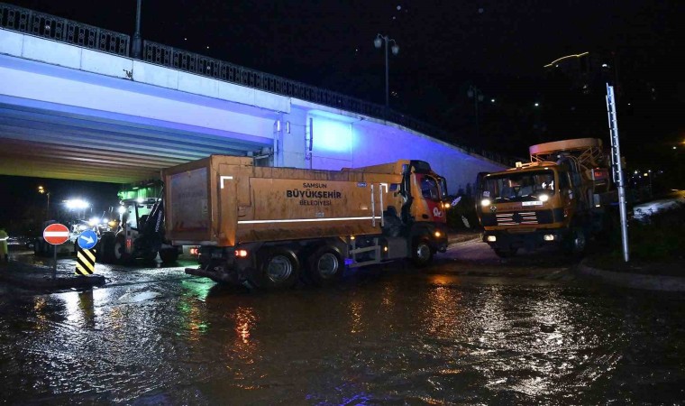 Kentte dün başlayan ve bugün de devam eden şiddetli sağanak yağış nedeniyle kent merkezinde meydana gelen su baskınlarına ve yaşanan diğer tüm olumsuz durumlara Samsun Büyükşehir Belediyesi ekipleri müdahalede bulundu. Meteoroloji Genel Müdürlüğü’nün tahminleri doğrultusunda yapılan sel uyarıları üzerine önceden gerekli tedbirlerini alan ve tüm ekiplerini hazır halde tutan belediye, gelen ihbarlara anında müdahale etti. Samsun Su ve Kanalizasyon İdaresi (SASKİ) Genel Müdürlüğü, Yol Yapım Bakım ve Onarım Dairesi Başkanlığı, İtfaiye Daire Başkanlığı ile Çevre Koruma ve Kontrol Daire Başkanlığı ekipleri sahada aktif olarak çalışma yapmaya devam ediyor.