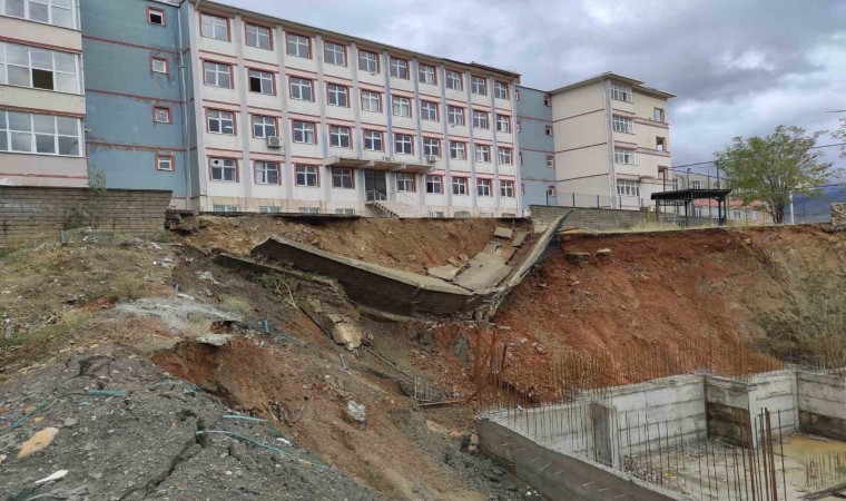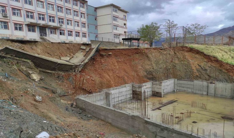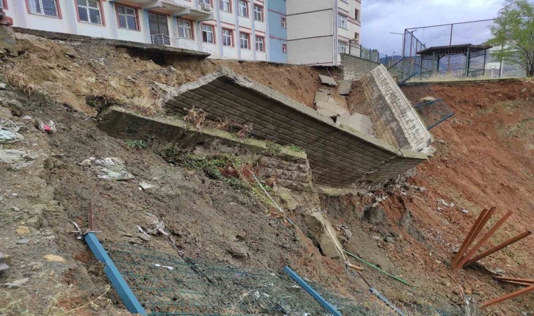 Batman’ın Sason ilçesinde aşırı yağışlardan dolayı bir lisenin istinat duvarı çöktü.