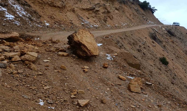 Alınan bilgilere göre, ilçenin Derince köyüne bağlı Yoncalı mezrasında yamaçtan kopan kaya parçaları yola düştü. Ulaşımın kapandığı yolda minibüslerin geçişi sağlanamadı. Yolun ulaşıma açılması için çalışma başlatıldı.