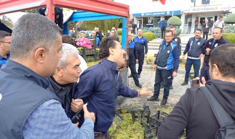 Ayhan’ın polis tarafından alınmasının ardından konuşan oğlu Anıl Ayhan ise "Bize üzüm sattırmıyorlar. 10 yıldır üzüm satıyoruz. Bir haftadır sürekli sorun yaşıyoruz. Üzümlerimiz çöp oldu. 30 bin lira zararımız var. Baskı yapıyorlar" dedi.