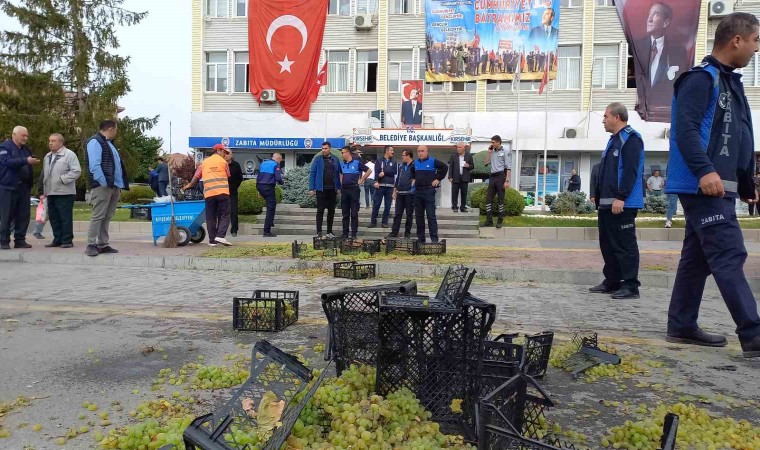 Kırşehir’de bir satıcı, kendisine üzüm sattırmayan CHP’li Kırşehir Belediyesi önünde sinir krizi geçirerek, kasasını belediyeye attı.