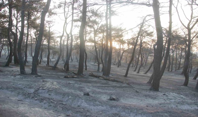 Çanakkale’de 46 saat önce başlayan yangına havadan ve karadan müdahale devam ederken 3. günde ilk ışıklar ile acı tablo gözler önüne serildi.