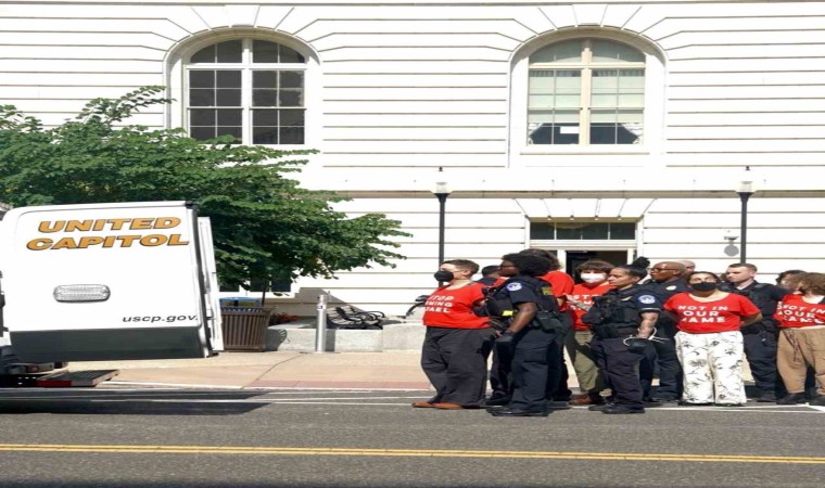 Polisin barışçıl gösteriyi sonlandırma çağrısına uymayan grubun üyeleri plastik kelepçe takılarak gözaltına alınırken, Capitol Polisi’nden yapılan açıklamada gösterinin “yasadışı” olduğu belirtildi. Açıklamada "Kongre binalarında gösteri yapılmasına izin verilmiyor. Yasal olarak içeri girenlere gösteriyi sonlandırmalarını, yoksa tutuklanacaklarını söyledik. Durmadılar, biz de onları tutukluyoruz” ifadeleri kullanıldı. Gözaltı sayısına dair kesin bilgi verilmezken, JVP’den yapılan açıklamada ise 300’ü aşkın göstericinin gözaltına alındığı belirtildi.