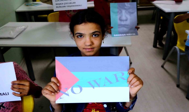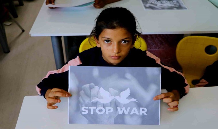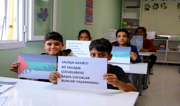 Türkiye başta olmak üzere birçok ülke İsrail’in saldırılarını kınarken, Suriye’deki iç savaştan kaçarak Türkiye’ye sığınan ailelerin çocukları, hazırladıkları dövizlerle savaşın bir an önce bitmesini istedi. Adana’nın Yüreğir ilçesine bağlı Koza Mahallesi’nde eğitim gören çocuklar, savaşın en çok çocuklara zarar verdiğini belirtti.