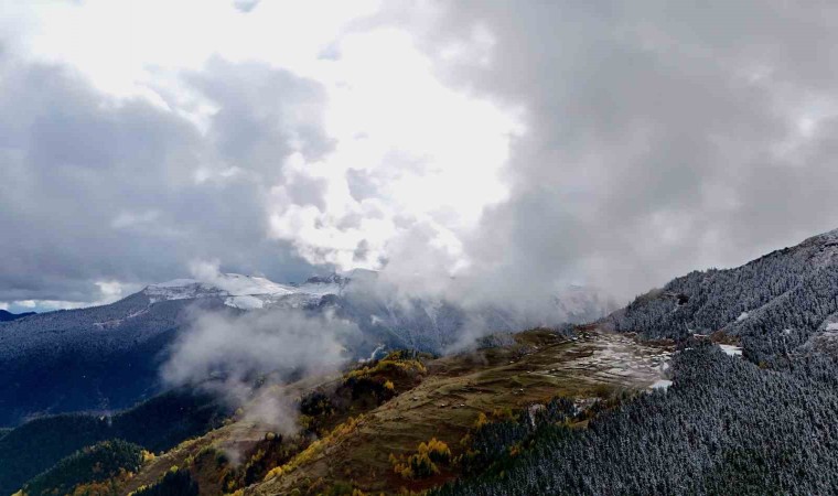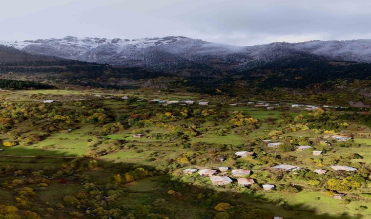 Kocaeli’nde yaşayan Arif Temiz, köyü olan Yağlı köyüne gelerek, sonbahar manzaralarını drone ile havadan görüntülerken, kar yağışıyla birlikte sonbaharın muhteşem görüntüleri yağlı tablo resimleri aratmadı.