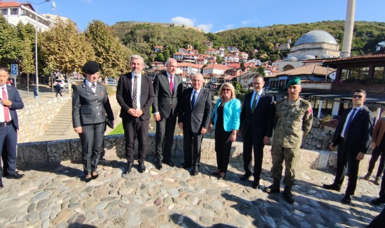 Milli Savunma Bakanı Yaşar Güler, Kosova’nın başkenti Prizren’de temaslarını sürdürüyor. Türk nüfusun yoğun olarak yaşadığı başkentte 1999 yılından bu yana Barış Gücü KFOR bünyesinde görev yapan Kosova Türk Temsil Heyeti Başkanlığı ziyaretinin ardından Güler, Prizren’deki tarihi Taş Köprü’de Kosova Demokratik Türk Partisi KDTP Genel Başkanı ve Kosova Bölgesel Bakanı Fikrim Damka, KDTP miletvekilleri Fidan Brina Jılta, Enis Kervan ve Kosova Büyükelçisi Tunç Angılı’nın da yer aldığı hatıra fotoğrafı çekildi.