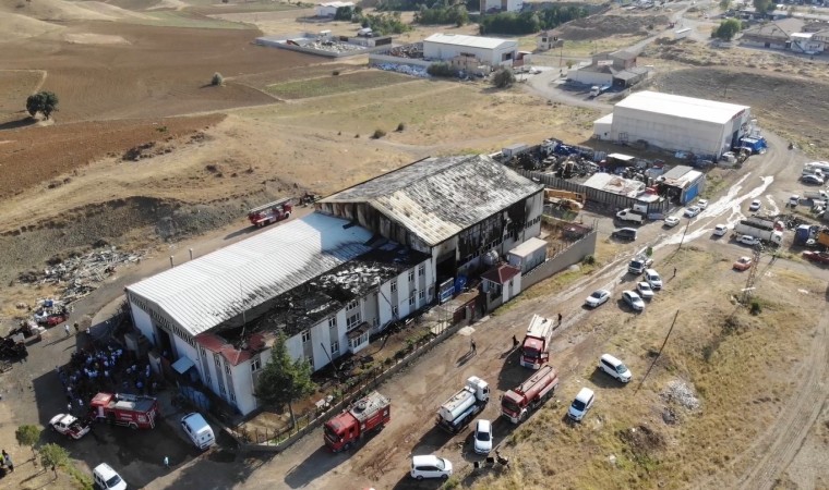 Yangın sonrası büyük çapta maddi hasarın oluştuğu fabrika dron ile havadan görüntülendi.