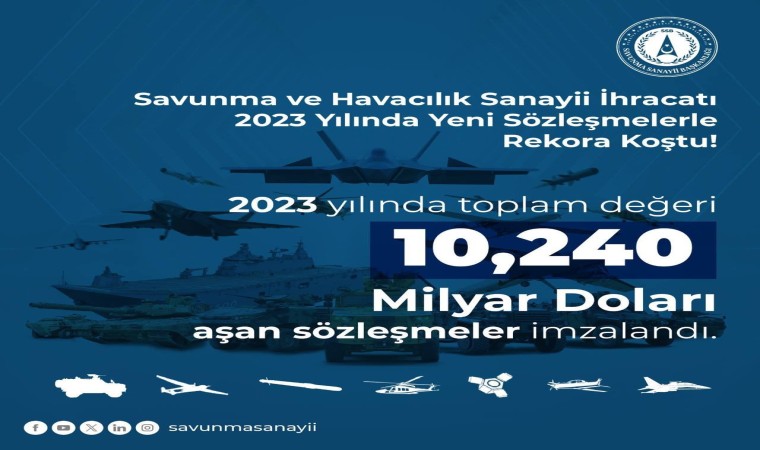Cumhurbaşkanlığı Savunma Sanayii Başkanı Haluk Görgün sosyal medya hesabından paylaşım yaparak, “Savunmanın yüzyılına birbirinden önemli yeni sözleşmelerle giriyoruz. Sürdürülebilir ihracat hedeflerimize emin adımlarla ilerliyoruz. Dün açıkladığımız rekor seviyedeki 2023 yılı Savunma ve Havacılık Sanayii İhracatımızla yeni bir kilometre taşını daha geride bıraktık. Bugün ise 2023 yılında imzaladığımız yeni sözleşmelerle çıtayı daha da yukarı taşıyoruz. İnsansız hava araçları başta olmak üzere, helikopterler, kara araçları, deniz araçları, silah ve mühimmatlar, füze sistemleri, elektronik sistemler ve radar sistemleri üreten firmalarımız 2023 yılında toplam değeri 10,240 milyar doları aşan sözleşmeler imzaladılar” ifadelerine yer verdi.