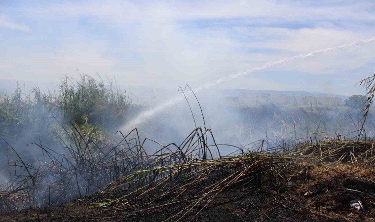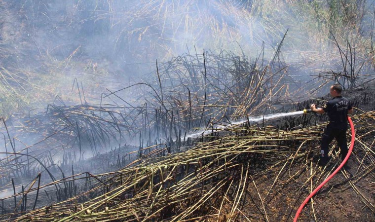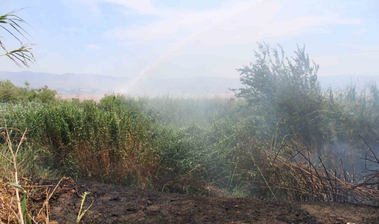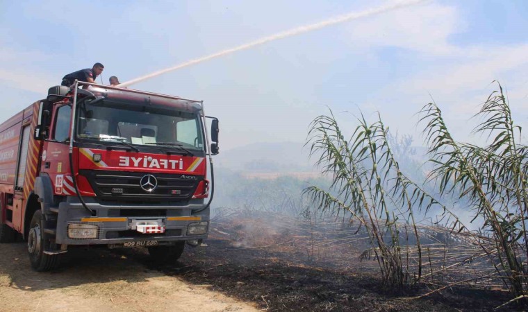 Aydın’ın Efeler ilçesinde sazlık bir alanda çıkan yangın rüzgarın da etkisiyle geniş bir alana yayılırken, itfaiyenin hızlı müdahalesiyle yangın kontrol altına alındı.