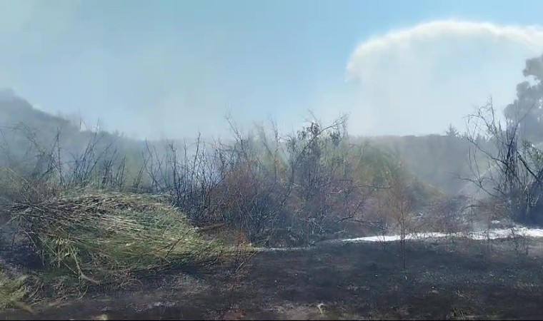 Manavgat’ta sazlık alanda çıkan yangın, ekiplerin müdahalesi sonucunda mezarlık ve tarım arazilerine ulaşmadan söndürüldü.